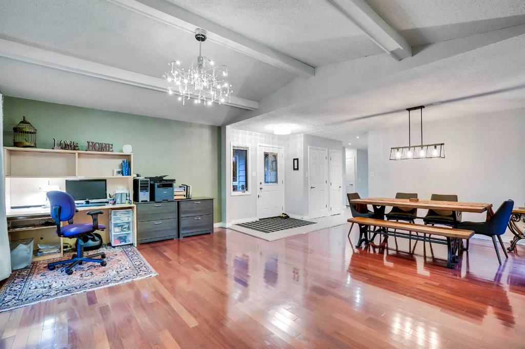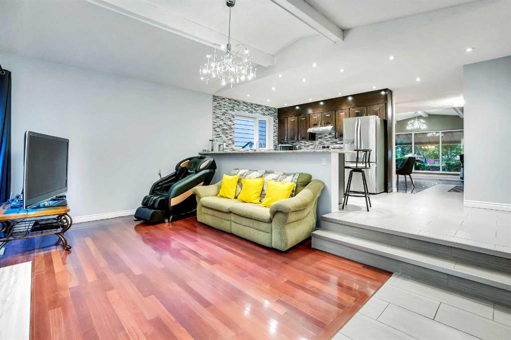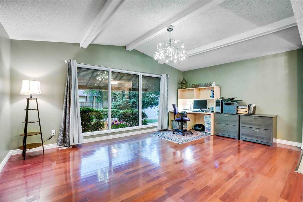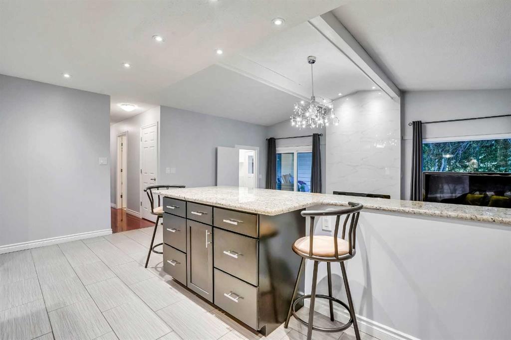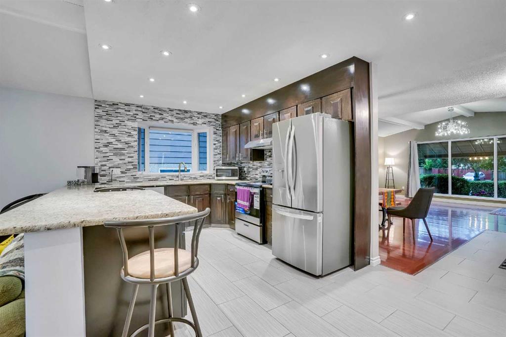 Located within walking distance to West Dalhousie Elementary, junior high and Catholic schools, the community centre, and the LRT, this home offers both convenience and a family-friendly lifestyle. Inside, you’ll find vaulted ceilings and a spacious layout featuring a sunken living room with a cozy electric fireplace. The main floor is finished with exotic OBSOLETE Purple Heart hardwood flooring, and the kitchen has been upgraded with granite countertops, a brand new stove and dishwasher, and a breakfast nook overlooking the green—ideal for peaceful mornings.