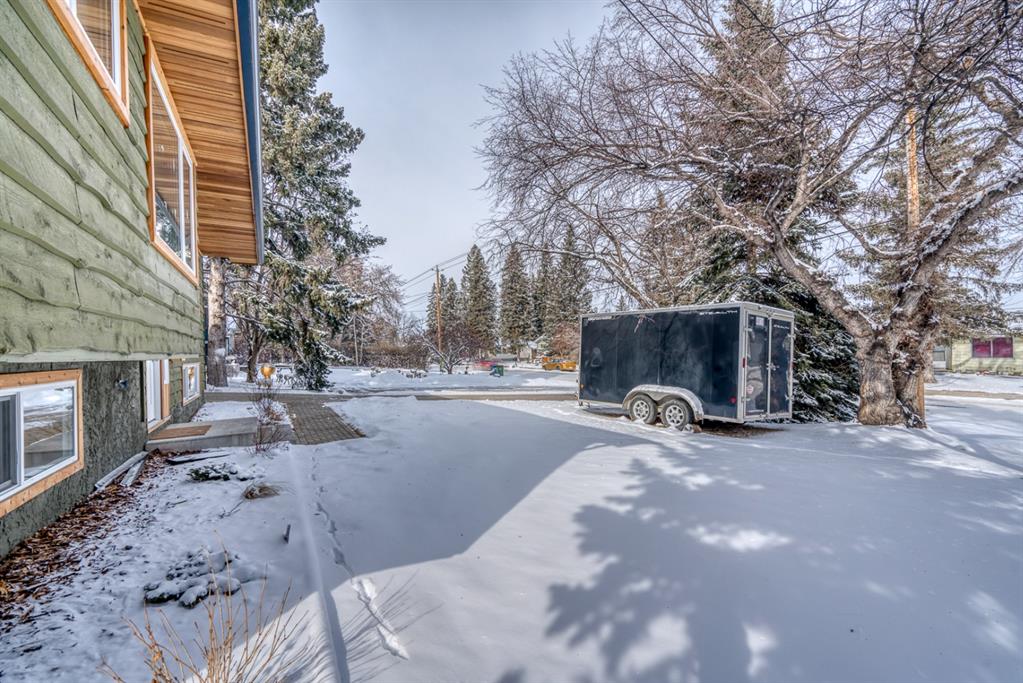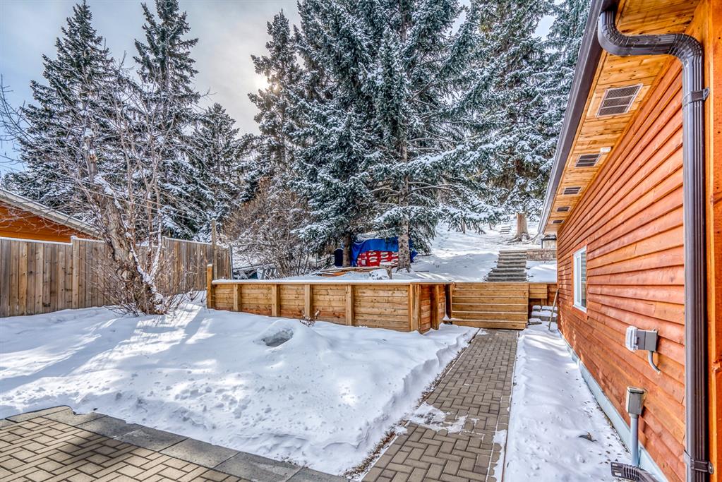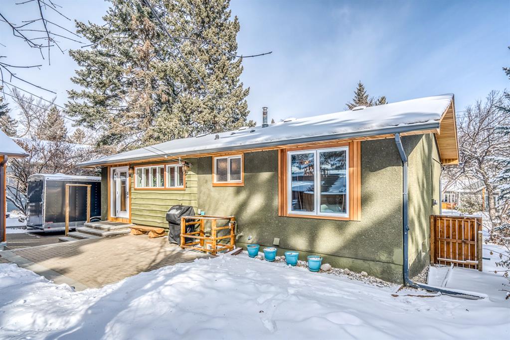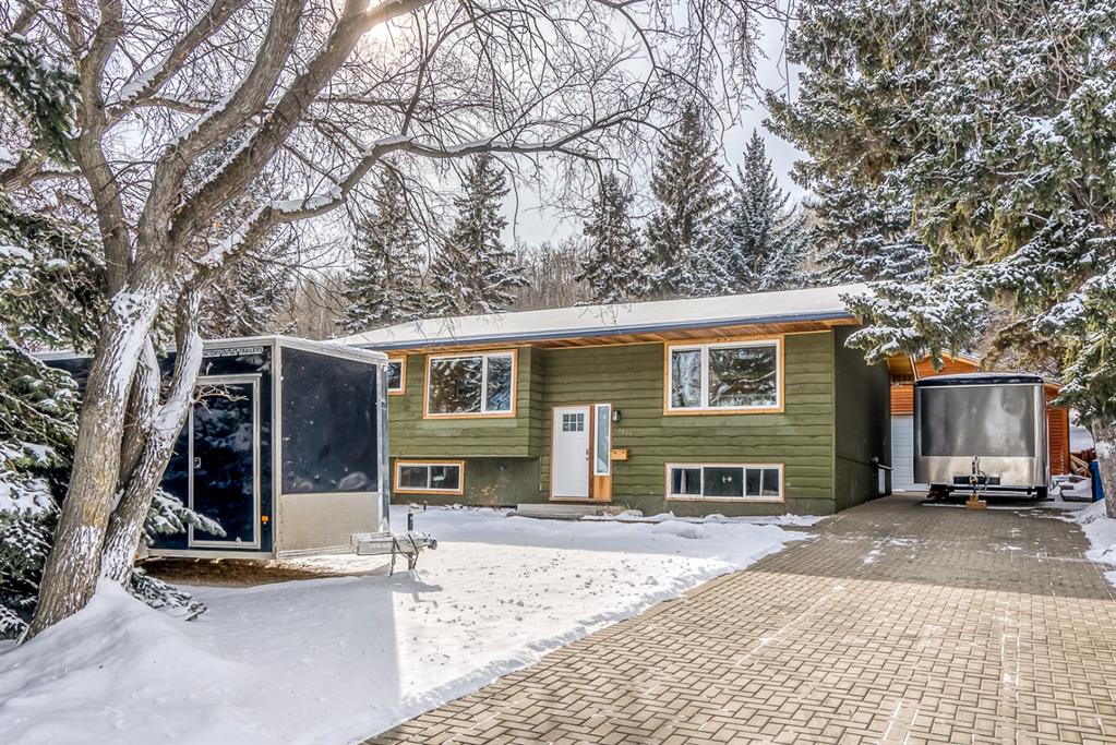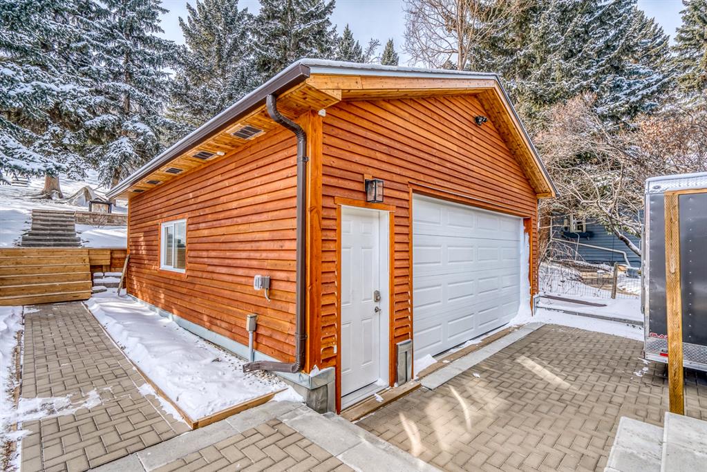 Impressive! Location + NATURE at your door step for this FULLY UPDATED and charming 5 bedroom Bi-level home with oversized heated double garage sitting ‘amongst the trees’ on an amazing 65 x 200ft (1/4 acre approx) mature treed + beautifully landscaped lot backing onto a forest like setting! Very rare combo of a private setting with sunny south back yard, views of a natural escarpment out every window, RV parking, quiet street, meticulously renovated and walking distance to schools, Bowness Park and the Bow River. Take advantage of what the current owners have just lovingly invested into this property over the last 5 years, which is well over $200k+ and no detail was spared making this truly a move-in ready home for the new owners. Please ask Listing Realtor for a full list of upgrades (or Realtors please see supplements page). Just some of the recent upgrades from the current owners include; a full basement renovation down to the concrete with all new Hvac ducts, all new plumbing & electrical wiring thru-out basement plus most of upstairs, all new insulation thru-out which includes a steel exterior door in the cellar, floors, walls, + a complete attic overhaul including new vents + blown in R80 insulation, most windows and doors all replaced, new beam installed with engineering approval, extensive landscaping with solid 6×6 post retaining walls, gorgeous paving stone driveway & patio, river rocks on planting bed, apple and cherry trees, saskatoon berries, raspberries, raised garden bed up the hill with lots of potential for more! Other new features include new fascia and soffits replaced with cedar, a brand new state of the art 24×22 garage with R24 under slab, 10′ ceiling, R30 walls, extensive air sealing, storage trusses, efficient electric infloor heat, 60 amp subpanel, R16 – 16′ garage door. The list goes on and must been seen in person to appreciate! Great location as you are 15 mins to downtown, 2 mins to C.O.P., good access to the mountains west, 12 min drive to the airport via the ring road, within a bike ride of the new Calgary West Farmers’ market and walking distance to Bowmont and Bowness Park.