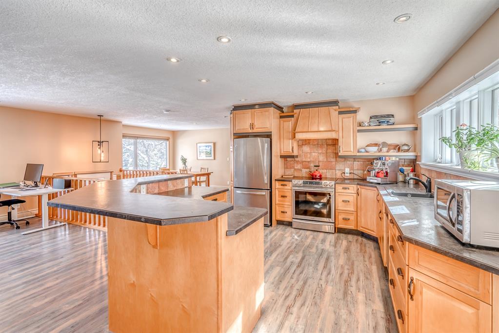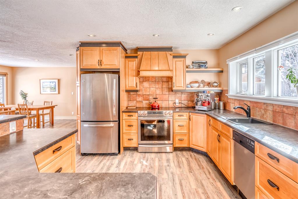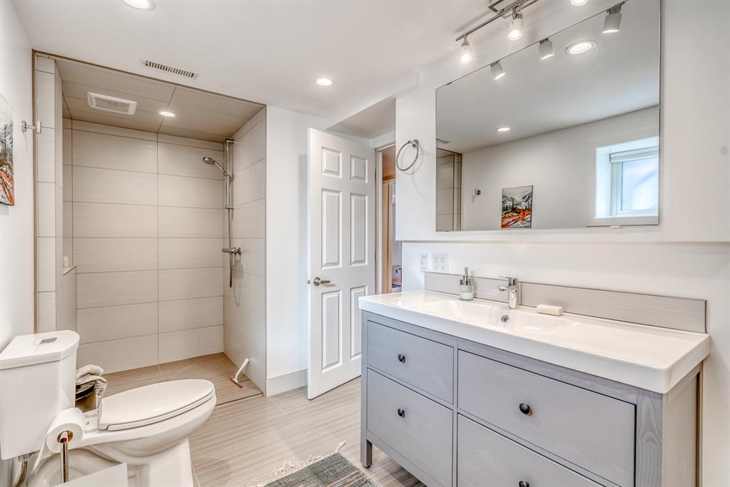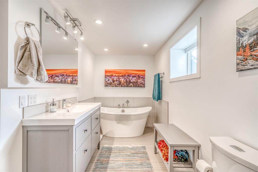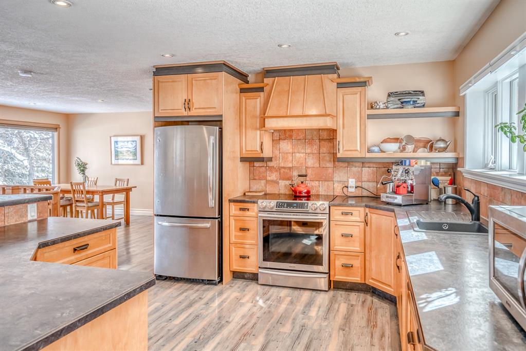 Impressive! Location + NATURE at your door step for this FULLY UPDATED and charming 5 bedroom Bi-level home with oversized heated double garage sitting ‘amongst the trees’ on an amazing 65 x 200ft (1/4 acre approx) mature treed + beautifully landscaped lot backing onto a forest like setting! Very rare combo of a private setting with sunny south back yard, views of a natural escarpment out every window, RV parking, quiet street, meticulously renovated and walking distance to schools, Bowness Park and the Bow River. Take advantage of what the current owners have just lovingly invested into this property over the last 5 years, which is well over $200k+ and no detail was spared making this truly a move-in ready home for the new owners. Please ask Listing Realtor for a full list of upgrades (or Realtors please see supplements page). Just some of the recent upgrades from the current owners include; a full basement renovation down to the concrete with all new Hvac ducts, all new plumbing & electrical wiring thru-out basement plus most of upstairs, all new insulation thru-out which includes a steel exterior door in the cellar, floors, walls, + a complete attic overhaul including new vents + blown in R80 insulation, most windows and doors all replaced, new beam installed with engineering approval, extensive landscaping with solid 6×6 post retaining walls, gorgeous paving stone driveway & patio, river rocks on planting bed, apple and cherry trees, saskatoon berries, raspberries, raised garden bed up the hill with lots of potential for more! Other new features include new fascia and soffits replaced with cedar, a brand new state of the art 24×22 garage with R24 under slab, 10′ ceiling, R30 walls, extensive air sealing, storage trusses, efficient electric infloor heat, 60 amp subpanel, R16 – 16′ garage door. The list goes on and must been seen in person to appreciate! Great location as you are 15 mins to downtown, 2 mins to C.O.P., good access to the mountains west, 12 min drive to the airport via the ring road, within a bike ride of the new Calgary West Farmers’ market and walking distance to Bowmont and Bowness Park.